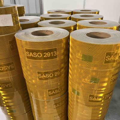 사우디아라비아에서 차량의 눈에 띄는 모습을 위해 SASO 2913 표준을 충족하도록 특별히 설계된 우리의 금속화 노란색 반사 테이프는 극한의 날씨에 저항하는 높은 가시성 성능을 결합합니다.독보적인 알루미늄 코팅은 모래 가려움증과 자외선 손상으로부터 우수한 보호를 제공합니다..