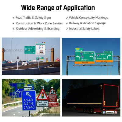 다양한 시야 거리와 관찰 각도에서 운전자에게 뛰어난 가시성을 보장하는 전 범위, 광각 재귀 반사 성능을 제공합니다. 저조도, 야간 또는 악천후 조건에서도 시트는 뛰어난 밝기와 선명도를 유지하여 도로 안전을 크게 향상시킵니다.